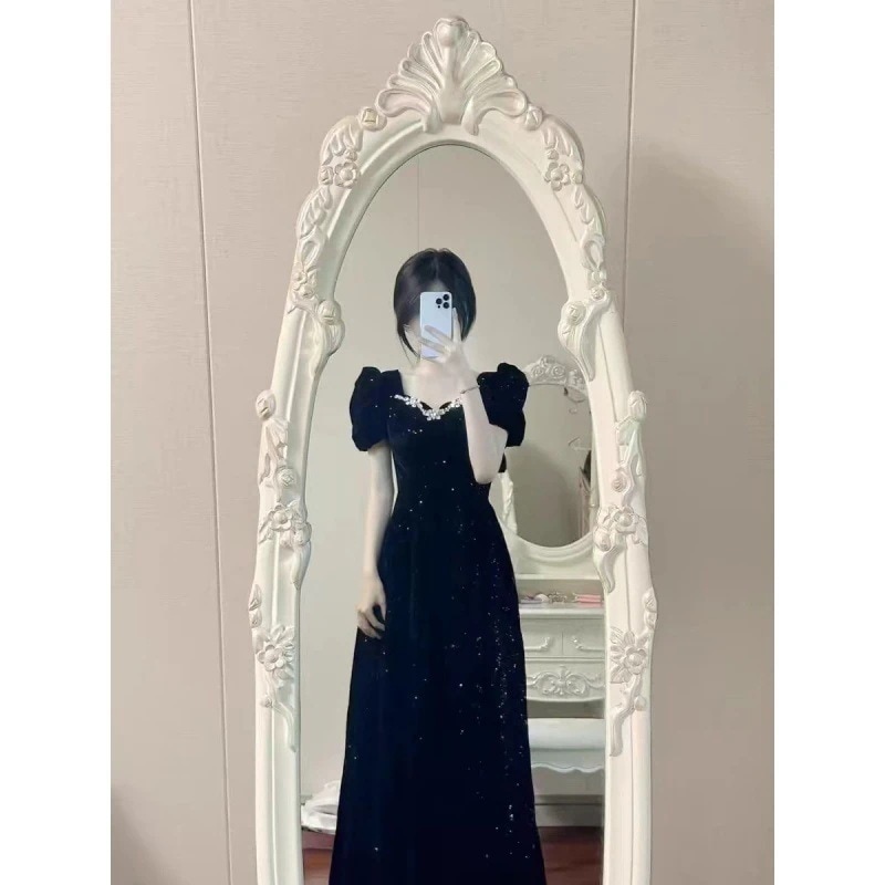 【即納】ワンピース フレンチエレガンスヴィンテージホワイトスレンダーレースワンピースロングスカート小柄仙女白スカート夏